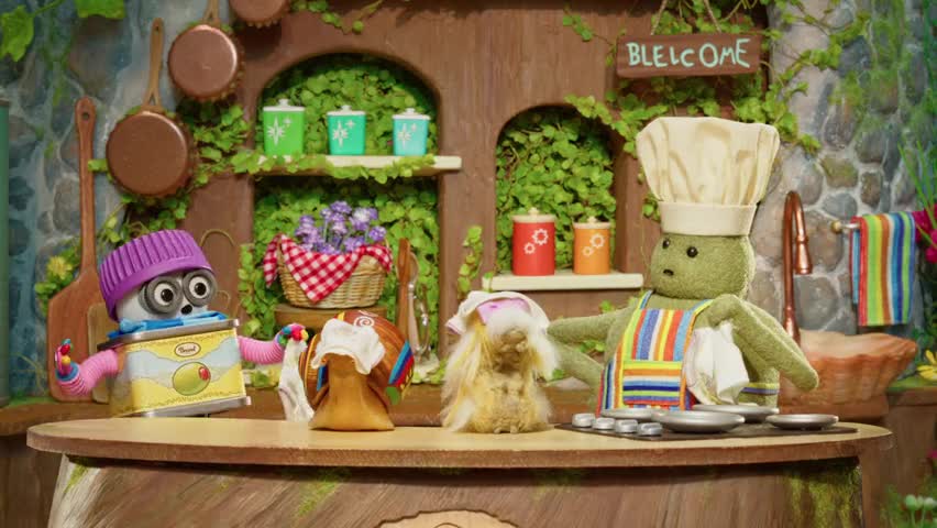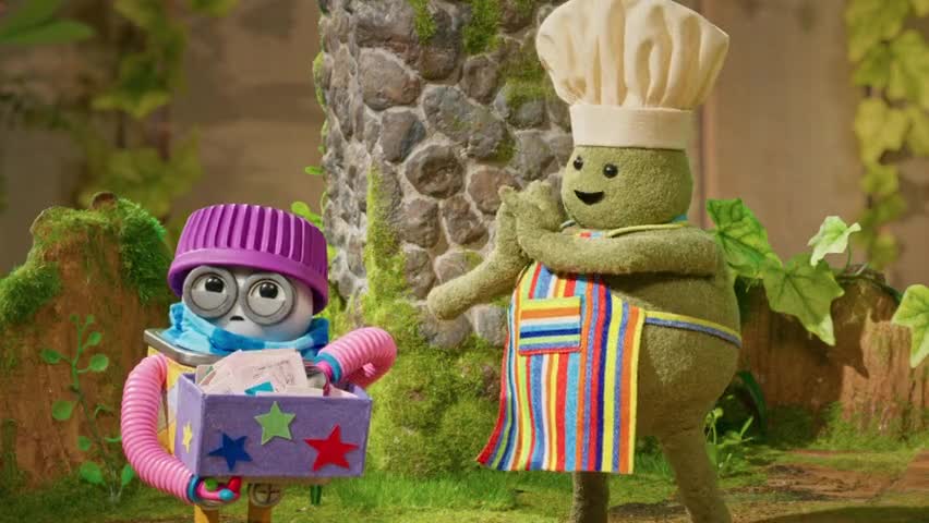 The adventures of a small green character who creates tiny plant-based meals.