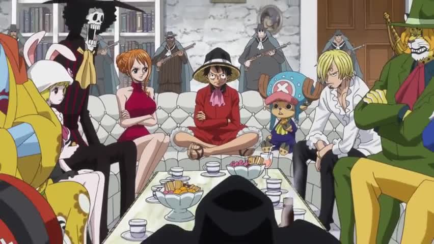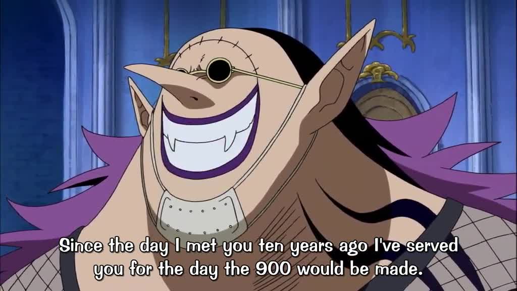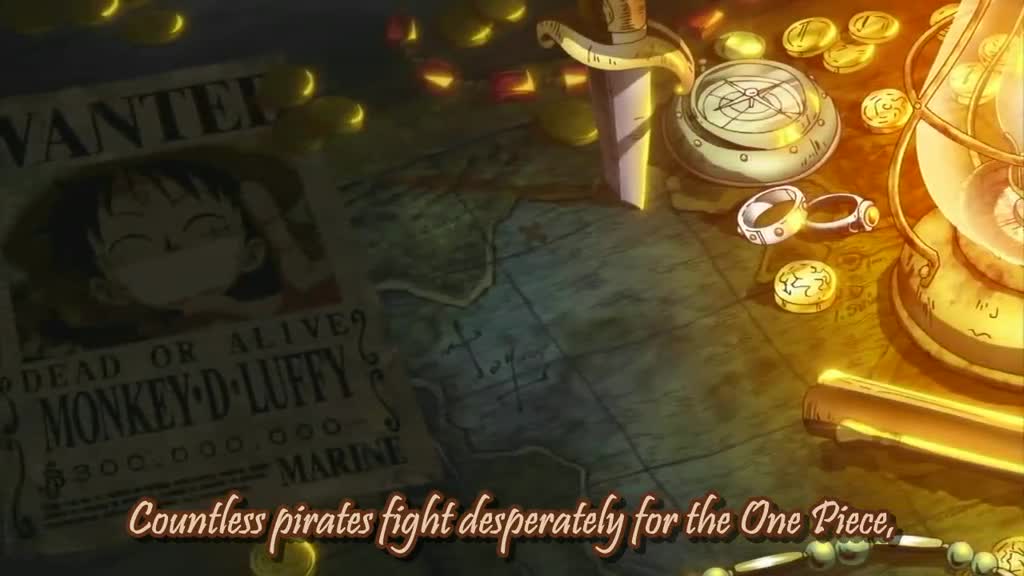 Monkey D. Luffy, a young man made of rubber who is the main character in the series, sets out from the East Blue Sea in search of the legendary treasure known as the One Piece in order to establish himself as the King of the Pirates. He is motivated by his childhood hero, the ruthless pirate Red-Haired Shanks. To put together his own band of pirates, the Straw Hat Pirates, After Roronoa Zoro, a pirate hunter and swordsman, is rescued by Luffy and becomes his friend, the two set out to find the wealth in question. A money-obsessed thief and navigator named Nami, a sniper and compulsive liar named Usopp, and a chivalrous but amorous cook named Sanji accompany them on their voyage. They purchase the Going Merry and engage in conflict with infamous East Blue pirates. Later in the series, other characters join the crew as Luffy and his companions embark on their adventures, including Tony Tony Chopper, an anthropomorphized reindeer doctor; Nico Robin, an archaeologist and former assassin for the Baroque Works; Franky, a cyborg shipwright; Brook, a skeleton musician and swordsman; and Jimbei, a fish-man helmsman and former member of the Seven Warlords of the Sea. The Thousand Sunny, which Franky builds for the Straw Hat Pirates after the Going Merry is irreparably damaged, As they travel the seas in search of their goals, they come into contact with a variety of allies and enemies, including other pirates, bounty hunters, criminal groups, revolutionaries, secret agents, and troops of the corrupt World Government.